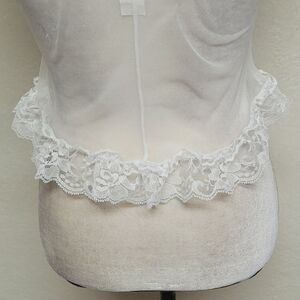 - Scalloped Edge White Lace Hem in a Hi-low Cut, High Low Hem