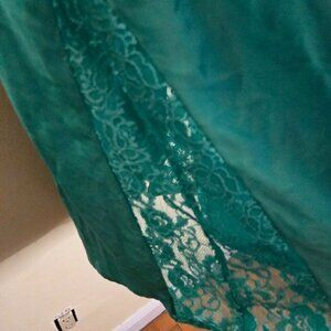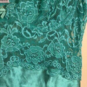Frederick's Of Hollywood Y2K Vintage Emerald Green Slip Dress Size M. Pit to pit 18", shoulder to hem 33", Underwire Bra, Sheer Lace And Satin, Empire Waist, Satin Skirt, Sheer Lace Side Panels. Good Pre-Owned Condition