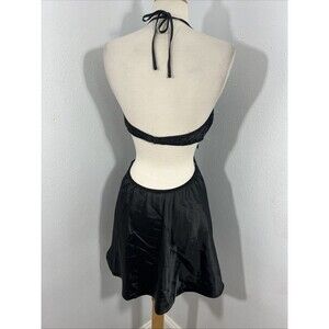 The product is a women's slip dress from Frederick's of Hollywood in size Large, featuring a black color and a V-neckline with a sleeveless design. Made from lightweight knit polyester fabric, the dress has a cami style with a strap accent and is machine washable. It embodies a fairycore 90s Y2K aesthetic, perfect for creating a whimsical and retro vibe, with elements of nature, hippie, grunge, bohemian, peasant, and retro themes. Ideal for various seasons, this dress is a stylish and comfortable option for women looking to add a touch of magic to their wardrobe. Y2K, 90's,Fairy, Feminine, Sexy, Fairy, Whimsy,Sleep, Lounge, Lingerie, Intimates, Boudoir, Black, Chemise, Bridal, Lounge, Lingerie, Intimates, coquette, Whimsigoth, Dark Fairy,