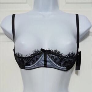 Fredericks of Hollywood Black Blue Lux Lace Open Cup Shelf Underwire Bra 18 NWT