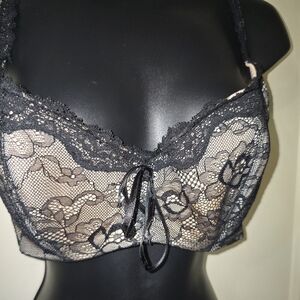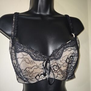Frederick's of Hollywood Black Lace Bra 36D Corset Accent Front With Bow 36D
