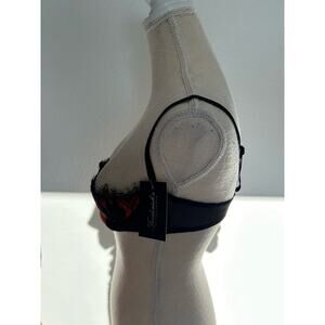 Frederick's of Hollywood Black and Orange Satin Lace Open Cup Underwire Bra - 10