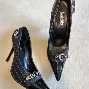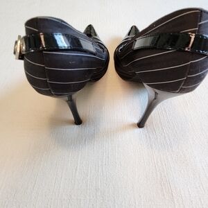 Frederick's of Hollywood Black and White Pinstripe Heels