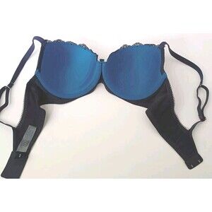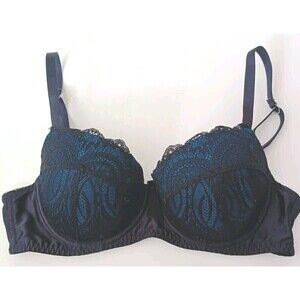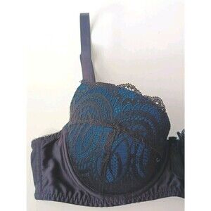 Frederick’s of Hollywood Bra Size 36C Black and Teal Lace Balconette Underwired