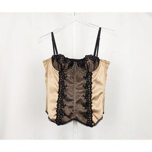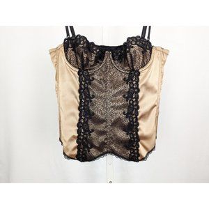 Frederick's of Hollywood Corset Bustier Top Beige Black Lace Misses Size 34