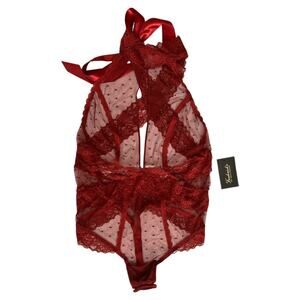 Frederick’s of Hollywood Deep Red Mesh Teddy, S