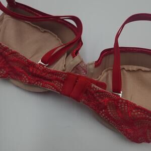 Fredericks of Hollywood Exxtreme Tuxedo Lace Push Up Bra in Red Size 32D