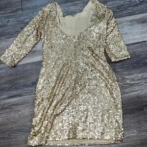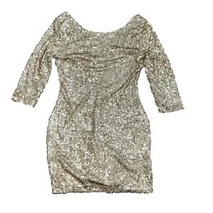 Fredericks of Hollywood Gold Sequin Dress Size Large Vintage