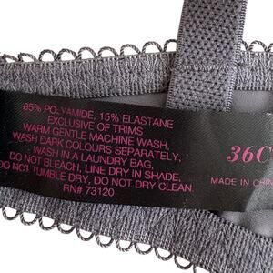 Frederick’s of Hollywood Gray Lace Underwire Bra 36C Rhinestone Heart Bling