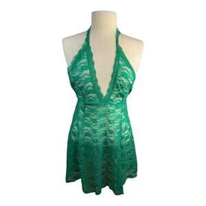 Frederick’s of Hollywood Halter 2 Piece Lace Teddy Thong Set Margherita Green M