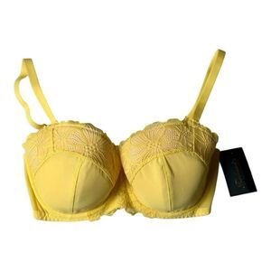 Frederick’s of Hollywood Karoline Yellow Lace Balconette Bra 32F New