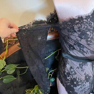 Frederick's of Hollywood Lace Mesh Bodysuit Cutout off Shoulder Size M Black