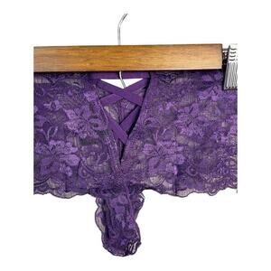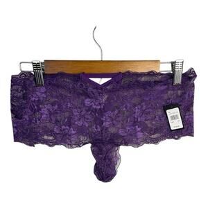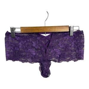 Frederick’s of Hollywood Lace Open Front Boy Short Panty in Deep Purple L/XL