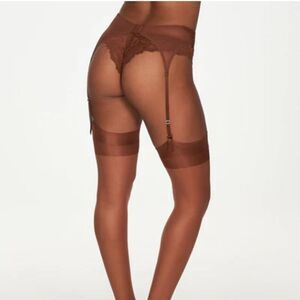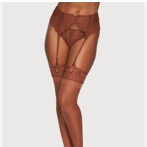 Frederick's of Hollywood Women's Sexy Jessica Lace Garter Belt in Coco Brown Size S/M.