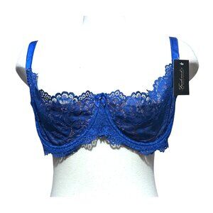 Fredericks of Hollywood NWT Sandie Demi Underwire Lace Bra Sz 42D Blue & Beige
