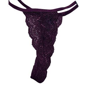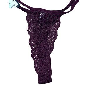 This is a pair of Fredericks of Hollywood NWT Set of 3 Thong Lace Panty Bundle Red Burgundy Black