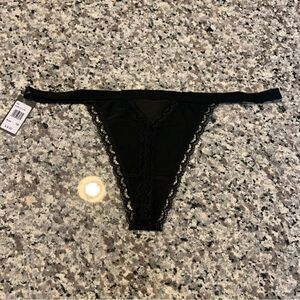 Frederick's of Hollywood Kira Sexy Lace Trim Thong V String Black Size 1X.