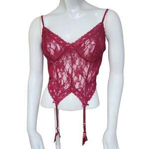 Frederick's of Hollywood Red Floral Lace Lingerie with Garter Clips (M)