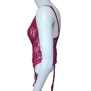 Frederick's of Hollywood red floral lace Bustier style lingerie with garter clips.