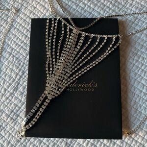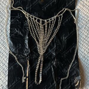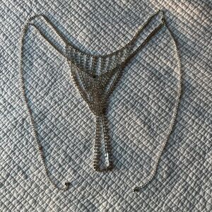 Fredericks of Hollywood Ziggy Rhinestone Silver thong. One size fits all/Adjustable. Never worn. Rhinestone g-string thong ONLY, does not include nude panties. Purchased for a costume but didn’t end up using.