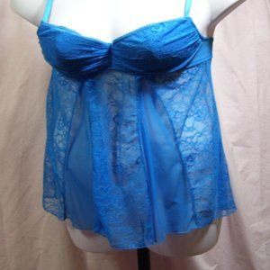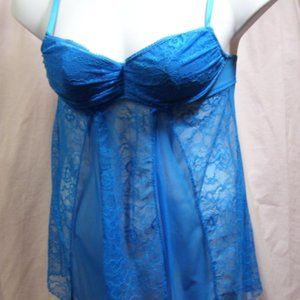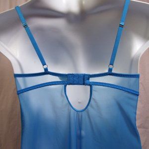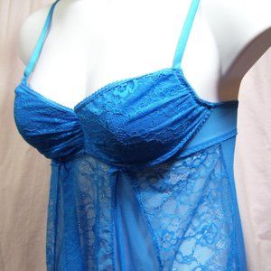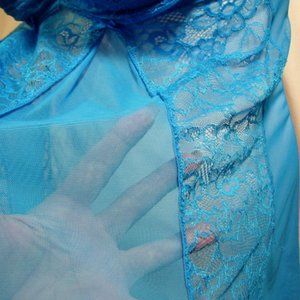 Frederick's of Hollywood Sexy Caribbean Blue Lace & Sheer Net Chemise Ni…