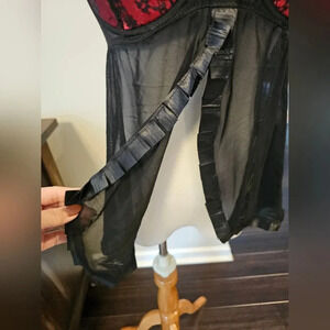 Fredericks of Hollywood Size Large Black Red Sexy Lingerie Top Open Front New with tag. Does not come with panties. Great gift! Cross posted on other selling platforms. I ship out same or next day. Thanks for looking!