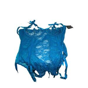 Frederick’s of Hollywood Skye Teal Blue Lace Open Cup Teddy NWT 1X/2X Lingerie