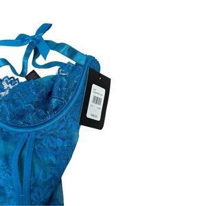 Turn up the heat with this Frederick’s of Hollywood Skye Underwire Teddy in stunning teal blue lace. New with tags, size 1X/2X, and in original bag. Features an open cup design, delicate lace detailing, sheer fabric, adjustable tie ribbons, and an open back for a sexy, customizable fit. Perfect for romantic evenings, anniversaries, or adding bold style to your lingerie collection. Comfortable yet daring, this teddy enhances curves and confidence.