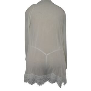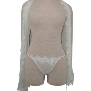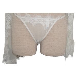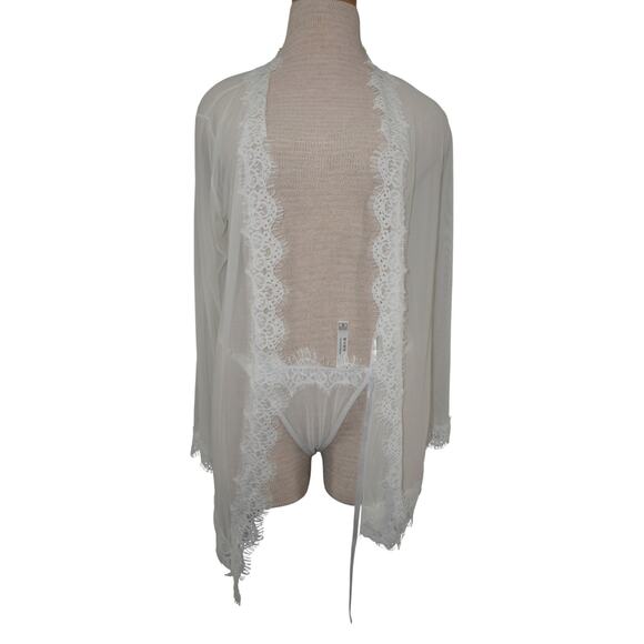 Frederick’s of Hollywood “Stephanie” Sheer Lace Robe & Thong Set – White – Size S/M – NWT (Missing Tie Rope)