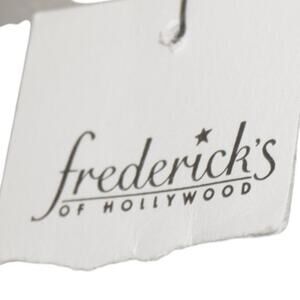 Elegant, romantic, and timeless — this sheer white Frederick’s of Hollywood lingerie set features a delicate lace-trimmed robe and coordinating thong. Perfect for a bridal trousseau, photoshoot, or simply luxe lounging.