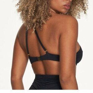 This is a Fredericks of Hollywood NWT Taormina Black One Shoulder Bikini Swim Top Open Front