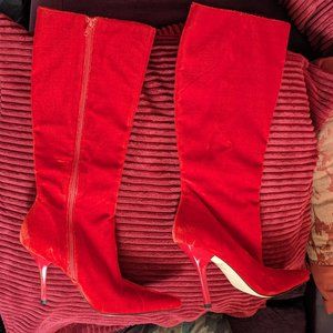 Frederick's of Hollywood Vintage Red Velvet Boots Y2K