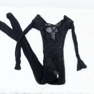 Vintage 90s Fishnet Bodystocking Black Bodysuit