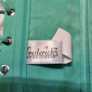 Frederick's of Hollywood Y2K Teal Mint Lace Up Corset Bustier and Matching Thong