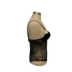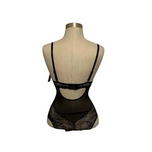 Frederick’s of Hollywood. Dina black lace bodysuit or teddy. Extreme push-up. Adjustable straps. Snap crotch closure. New with tags. Smoke free & pet free home.