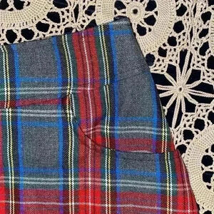Frederick’s of Hollywood plaid mini skirt. Size 5. In excellent pre loved condition. Waist measures 25” & skirt is 14” long.
