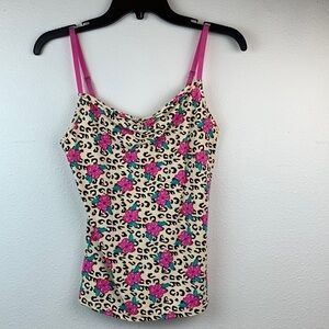 Fredericks of Hollywood smoother camisole top tropical leopard hibiscus print