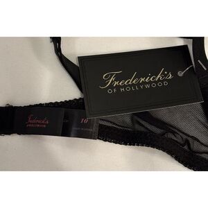 This is a Frederick's of Hollywood Orange Lux Demi Bra in size 10. It is underwired and made of nylon. The bra is designed in a demi style, making it a supportive half bra. It is brand new and offers a luxurious satin feel in a vibrant orange color.