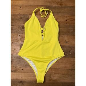 Frederick's of Hollywood SMALL NWT Sunset Strap Blazing Yellow Halter Swimsuit