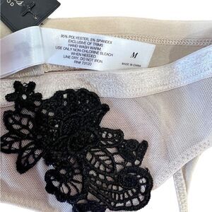 Sheer, cream in color with black embroidered floral detail.