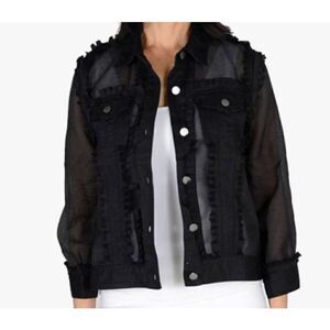 Frederique Womens Black Ruffle Raw Cut Seam Button Front Jacket