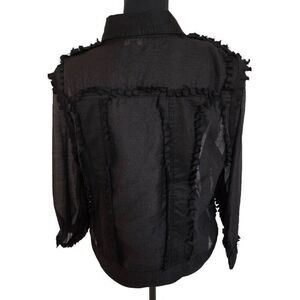 Frederique Womens Black Ruffle Raw Cut Seam Button Front Jacket Large