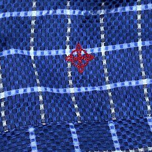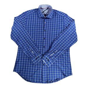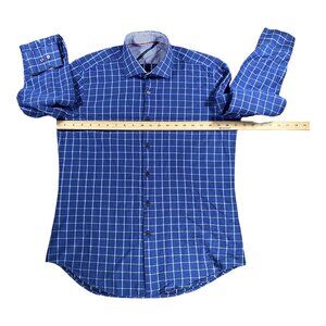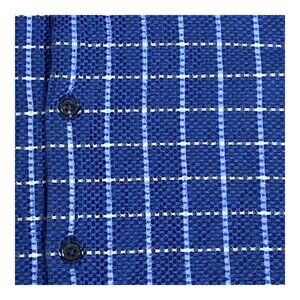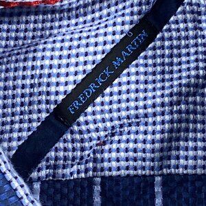 Fredrick Martin Shirt Mens M Cotton Blue Plaid Textured Embroidered Logo Pocket