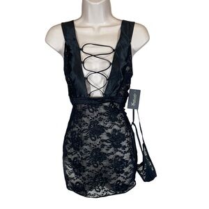 Fredrick’s of Hollywood Belle Lucia black lace chemise and panties medium New