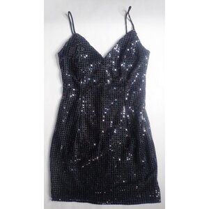 Fredricks of Hollywood Black Sequined Spaghetti Strap Mini Dress 7/8