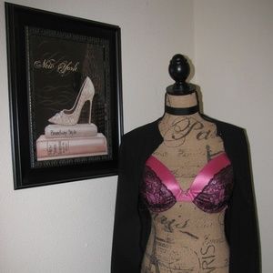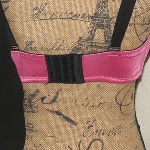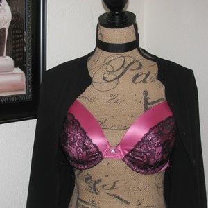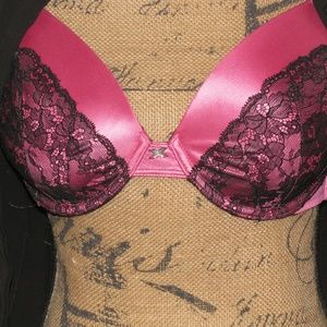 Hot pink and black lace Fredricks of Hollywood Bombshell push-up bra.