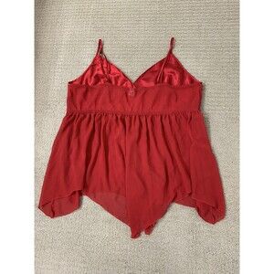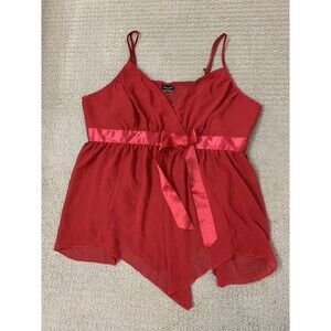 Fredricks of Hollywood red v-neck chiffon bow going out party holiday lingerie sexy babydoll camisole spaghetti strap top in size 1X. All measurements are taken laying flat and approximate.