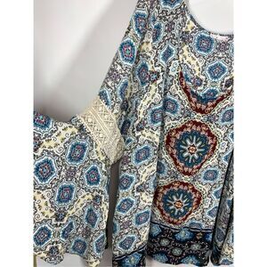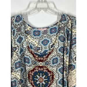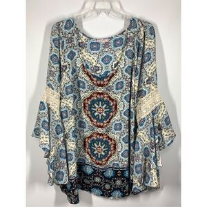 Free 2 Luv Womens Geometric Bell Sleeve Scoop Neckline Blouse Multicolor Size 3X