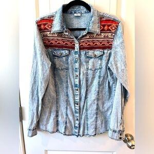 Free 2bu Western Chambray shirt snap buttons Size 14 (Girl)