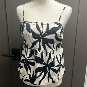 Stylish black and white floral top perfect for any occasion. Features a chic design with comfortable straps. Ideal for pairing with jeans or skirts.
